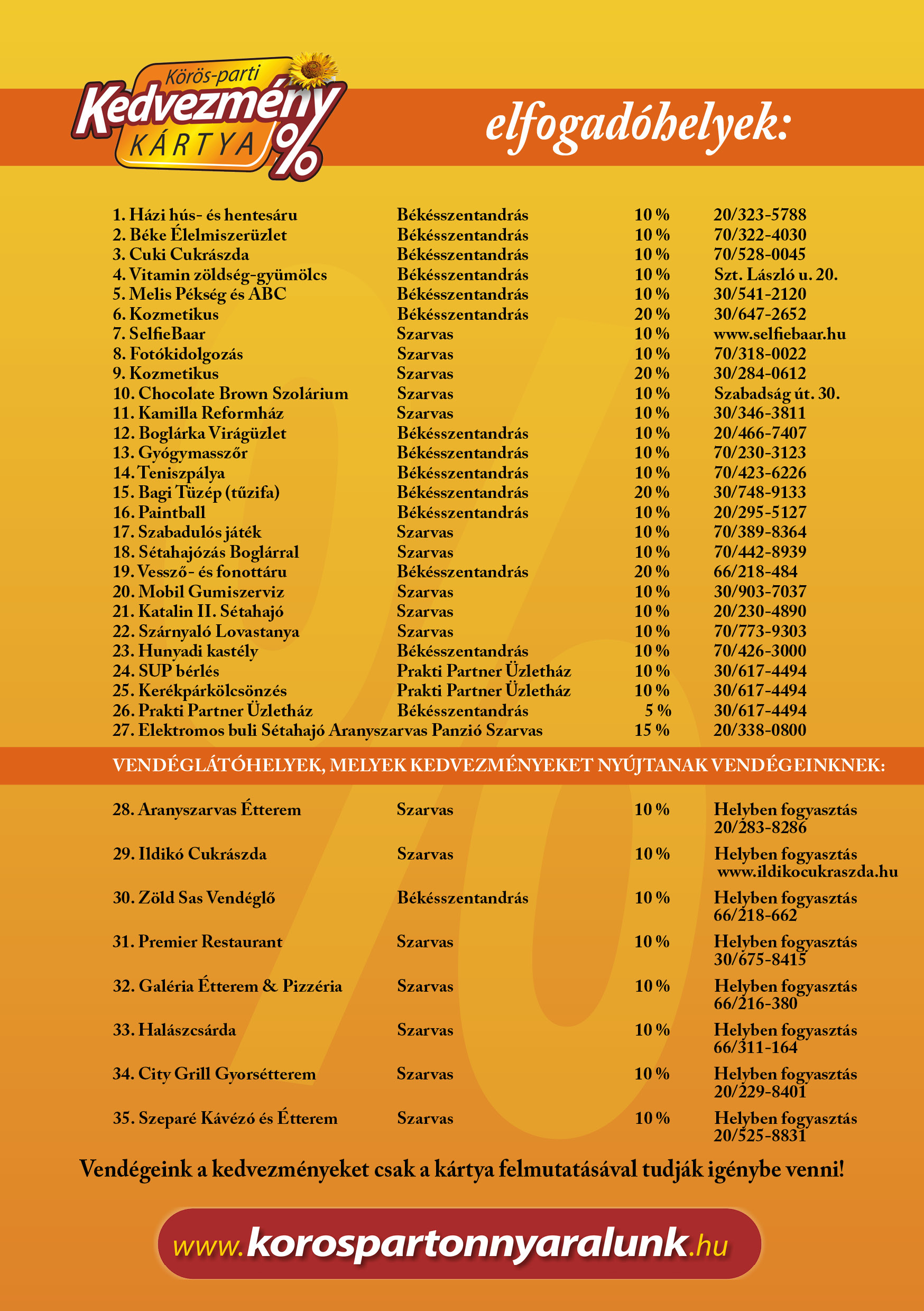 Kedvezménykártya elfogadó helyek