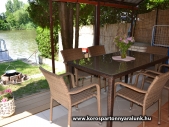 4+2 férőhelyes közvetlen vízparti, Békésszentandráson a Siratói Körös-holtág partján elhelyezkedő, jacuzzis, Finn szaunás, gyerekmedencés, légkondicionált, téliesített, szépen parkosított nyaraló. Az emeletes épület földszintjén nappali amerikai konyhával, fürdőszoba wc-vel, mosdóval, zuhanyzóval. Fedett körterasz mely körben üvegponyvával védett. Az emeleti részben, a csigalépcsős feljáróval egy légtérben 2 heverő, és egy franciaágy helyezkedik el. Vendégeink részére a fedett terasz alá került beépítésre, az 5 személyes, télen is üzemelő Canadai jacuzzi. A vízpart fürdőzésre, horgászásra alkalmas, melyhez stég, csónak, bográcsozó, és a külön álló 4 személyes Finn szauna épület tartozik. Udvaron gyerekmedence, rönkfa játszótér csúszdával, mászókával, hintával. 2 személyautó parkolására alkalmas parkoló. Szabad Wifi.