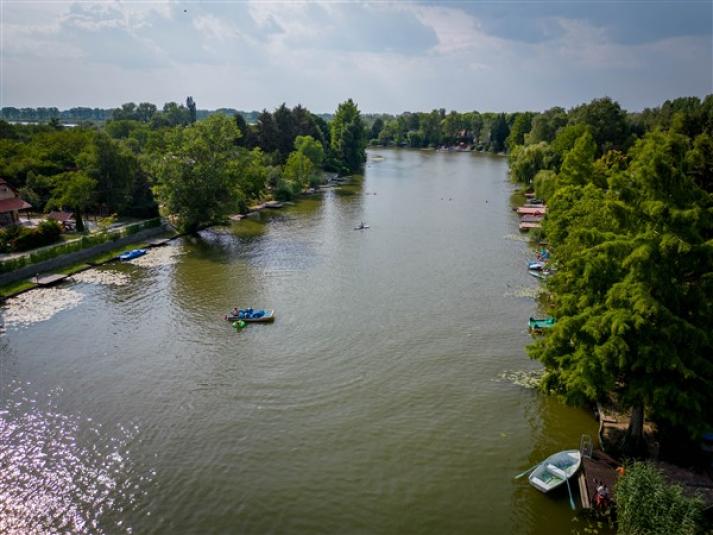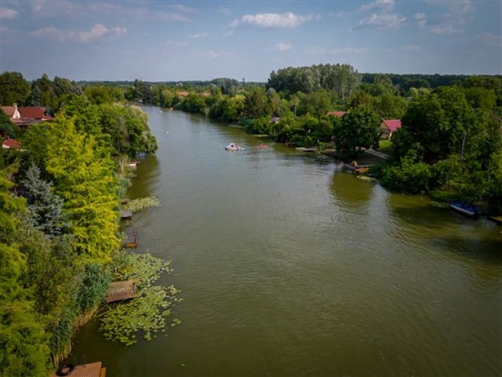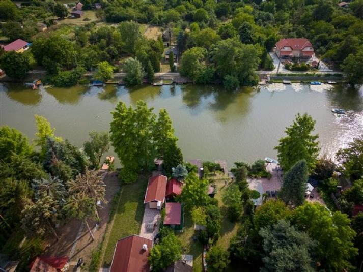 6+2 férőhelyes, 2 szobás, földszintes, hűtő-fűtő légkondicionálóval felszerelt nyaraló közvetlen a Kákafoki-holtág vízpartján, az Arborétumi üdülősoron.