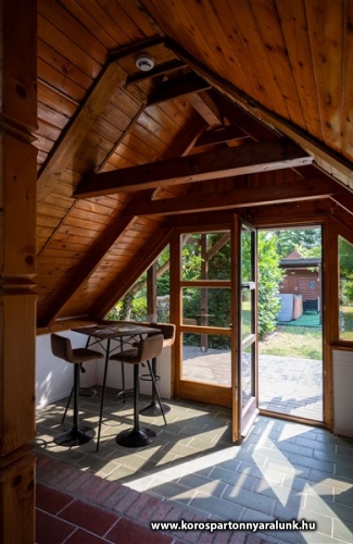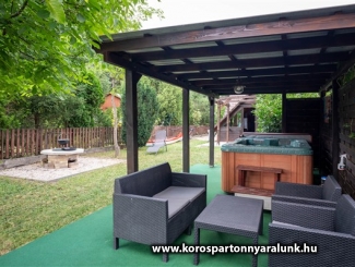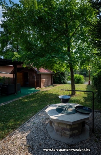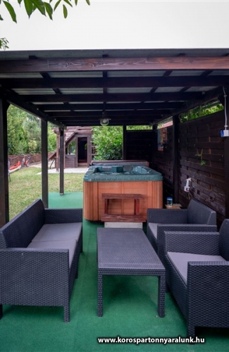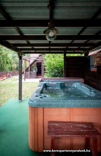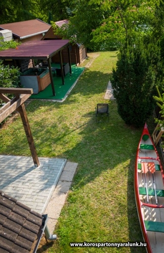 A főépület és a vízpart között található egy kisház, mely 2 fő részére biztosít férőhelyet, valamint innen nyílik egy fedett terasz 3 személyes Coast Spas jakuzzival, kerti kiülővel. A vízpart felől kiépített stég, bográcsozó, napozóágyak. A környék felfedezésére 1 db kerékpár, 1 db 4 személyes túrakenu áll Vendégeink rendelkezésére, melyhez mentőmellény is biztosított. Szabad Wifi.