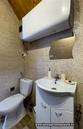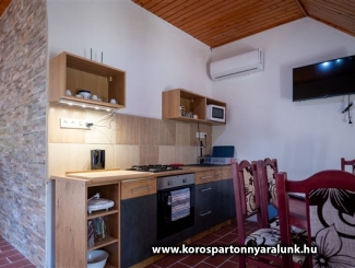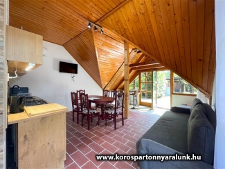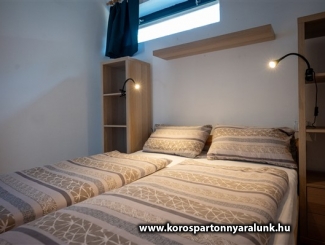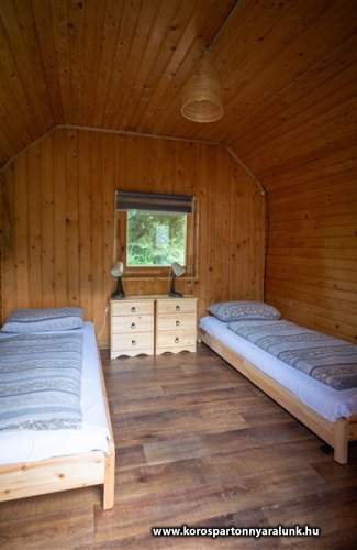 A nyaralóházban amerikai konyhás nappali, zuhanykabinnal ellátott fürdőszoba, 1 db szoba franciaággyal található, illetve egy félszoba kinyitható kanapéval.