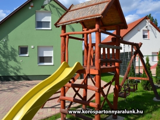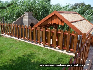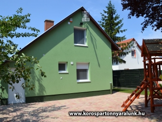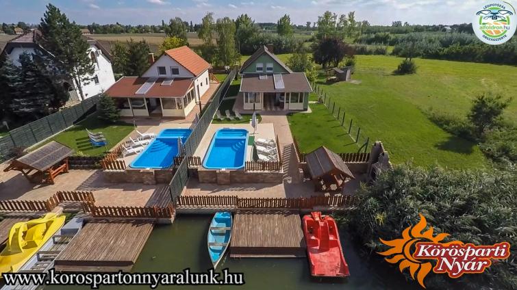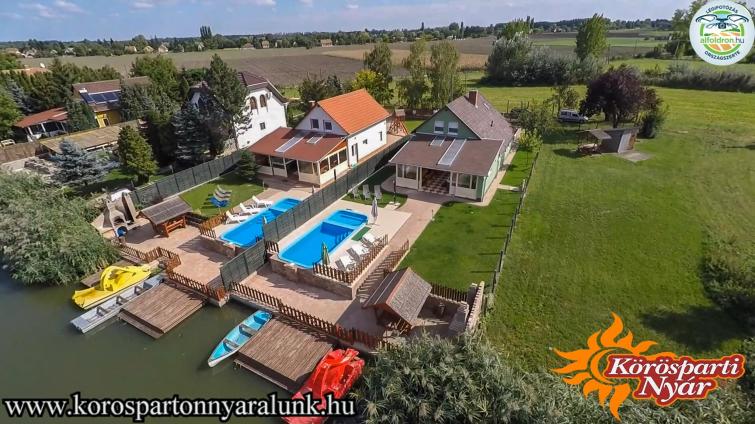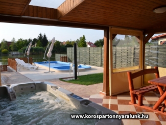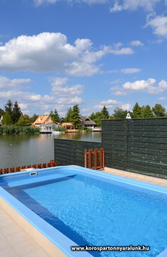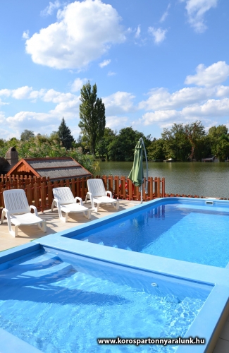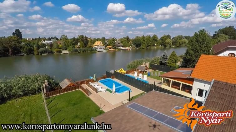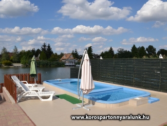 9+2 férőhelyes emeletes, hőszigetelt, légkondicionált, gázkazánnal-központifűtéssel télen is jól fűthető nyaralóház. Az épületben 4db különálló szoba, amerikai konyhás nappali, 3db fürdőszoba WC-vel. A fedett fűthető teraszon nyári konyha, jacuzzi, Finn szauna áll a vendégek rendelkezésére. A vízpart kiépített, fürdőzésre, horgászatra alkalmas. Udvaron 5x3x1.2 méteres nagymedence összeépítve egy 2.5x3x0.5 méteres gyerekmedencével. A medencék polikarbonát tetővel fedettek és hőszivattyúval fűthetőek. (képeken még nem látszik) Rönkfajátszótér, vízibicikli, csónak, bográcsozó-grillező is tartozik a nyaralóhoz. Az épület kerekesszékes vendégeink számára akadálymentesített. Családoknak, baráti társaságoknak ajánlott. A Gondalaposi 3-as, 4-es nyaralók szomszédos épületek. A két telek közötti közös kerítésen, egy kiskapuval az átjárás megoldott, így nagyobb társaságok számára a két nyaraló egyben is használható. Szabad wifi.