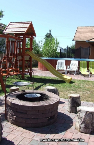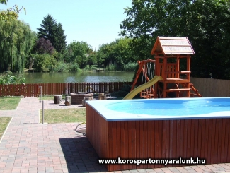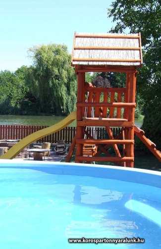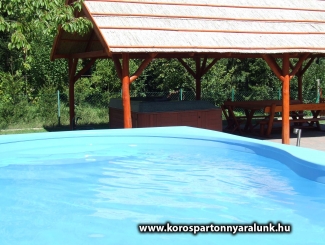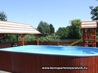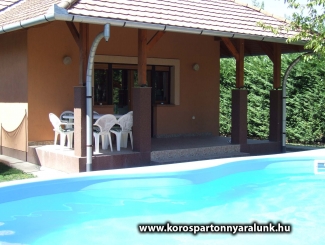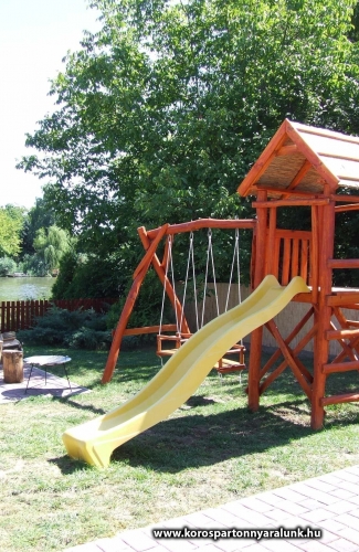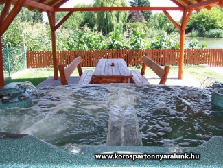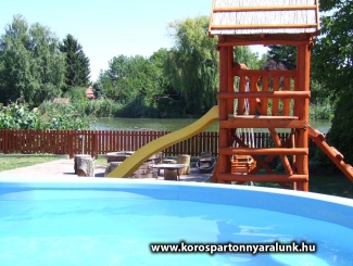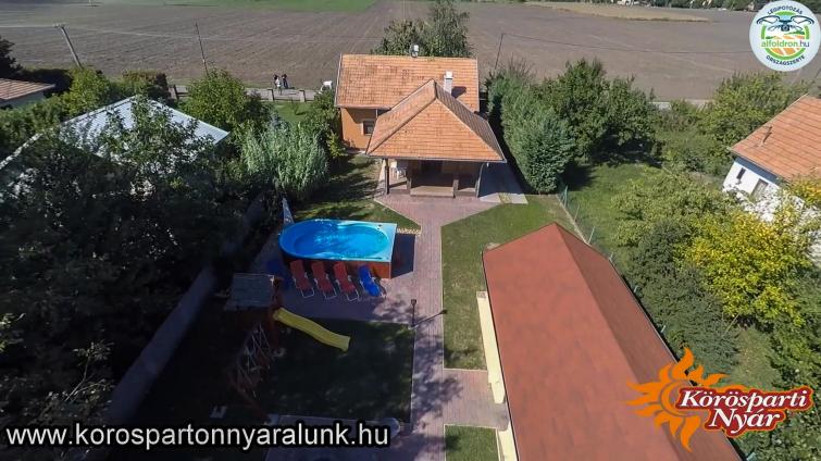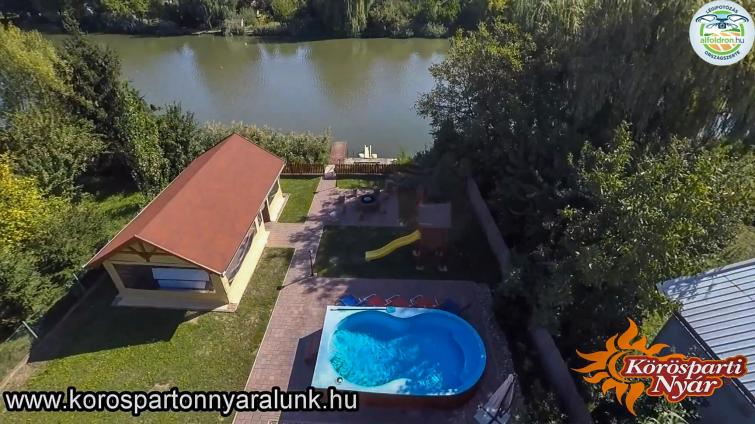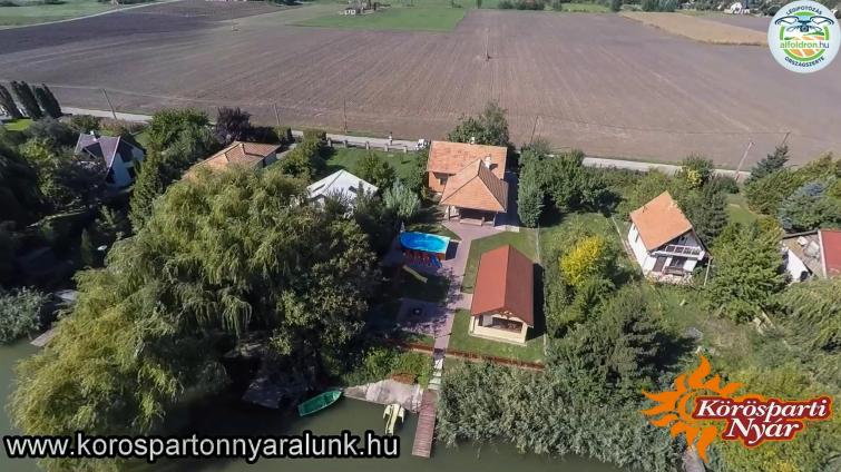 8+2 férőhelyes igényesen felszerelt és berendezett légkondicionált, téliesített nyaraló. Földszinten nappali amerikai konyhával, fürdőszoba szaunával, és egy francia ágyas szoba. Emeleten két szoba, mindkettőben francia ágy, és egy-egy heverő. Az emeleti közlekedőből nyílik: gardrób, wc, fürdőkádas fürdőszoba. Udvaron külső 540x310x100 cm medence, egy 6 személyes jacuzzi, gyerek rönkfa játszótér, bográcsozó. 20 méter széles kiépített, a gyerekek védelme érdekében zárt vízpart, melyhez tartozik csónak, vízibicikli, horgászkiülő, parti világítás. A körös part felől a terasz ponyvával ellátott. Az udvaron zárt parkoló. Szabad Wifi.