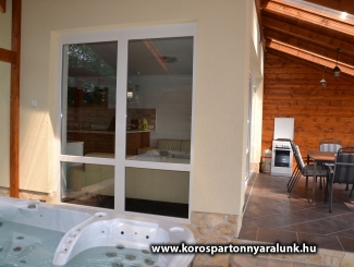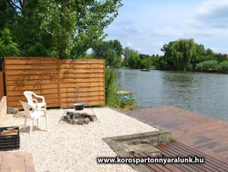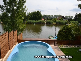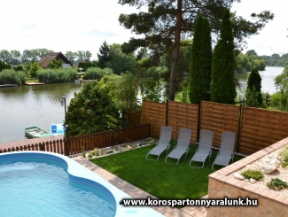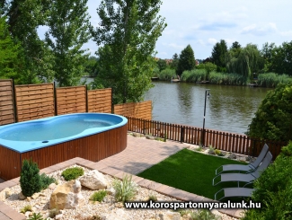 10+3 férőhelyes 4 szobás, jacuzzis, infraszaunás, föld feletti medencés, légkondicionált, hőszigetelt-téliesített, parkosított nyaraló. Békésszentandráson a Siratói-holtág közvetlen vízpartján, a Kenderföldi üdülősoron helyezkedik el. Az emeletes épület földszintjén tágas nappali, felszerelt amerikai konyhával. A földszinti közlekedőből nyílik 1 fürdőszoba és egy 3 ágyas szoba. Vízpart felől fedett, körben üvegponyvával borított terasz étkezőasztallal, székekkel, jacuzzival, infraszaunával, gyönyörű kilátással a Körösre. A teraszt hűvös időben gázos hőgombával tudjuk fűteni. Az emeleten a nappaliból nyílik egy fürdőszoba tusolóval, mosdóval, WC-vel és a három emeleti szoba. Az emeleti nappaliban ülőgarnitúra és egy heverő áll vendégeink rendelkezésére. A légkondicionáló ebben a helyiségben van felszerelve. A vízpart 10 méter széles, a horgászat kedvelőinek óriási stéggel. Vízparton csónak, vízibicikli, bográcsozó teljes felszereléssel. A medence az épület és a vízpart között helyezkedik el. 5x3 méteres, ipari vízforgató berendezéssel ellátott. Az udvaron a gyerekek kedvéért tornyos rönkfajátszótér csúszdával, mászókával, hintával, strandröplabda pálya, trambulin. Az utca felől 3 személyautó parkolására alkalmas zárt parkoló. Szabad Wifi.