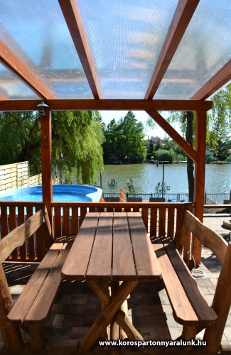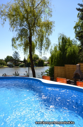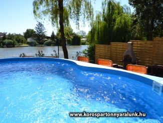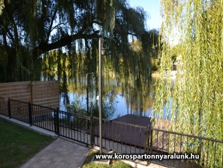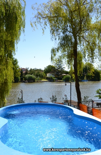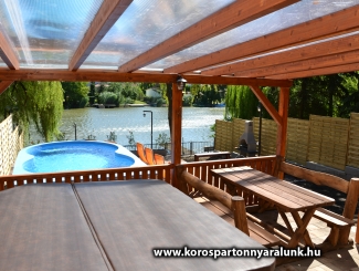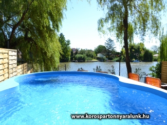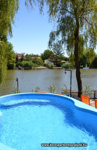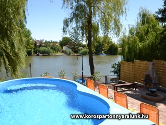 10+2 férőhelyes emeletes, légkondicionált nyaraló. Békésszentandráson a Siratói-holtág közvetlen vízpartján, a Kenderföldi üdülősoron helyezkedik el. Az épületben 5 db különálló szoba, 2 db fürdőszoba WC-vel, nappali konyhával, étkezővel. A vízpart felől fedett nagyméretű terasz nyári konyhával, külön fagyasztórésszel ellátott hűtőszekrénnyel, asztallal, székekkel. A fedett terasz vízpart felöli részére lett beépítve a 6 személyes HotSpring jacuzzi. A vízpart 10 méter széles, a horgászat kedvelőinek nagy stéggel, csónakkal, vízibiciklivel. Udvaron bográcsozó faszenes grillező teljes felszereléssel. A medence az épület és a vízpart között helyezkedik el. 5x3 méteres, ipari vízforgató berendezéssel ellátott. A 800 m2-es udvaron a gyerekek kedvéért tornyos rönkfajátszótér csúszdával, mászókával, hintával. Az utca felől 5 személyautó parkolására alkalmas zárt parkoló.