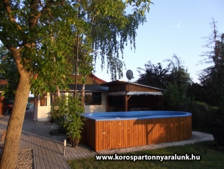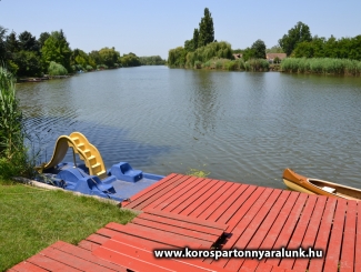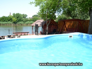 8+3 férőhelyes emeletes, légkondicionált, téliesített, jacuzzis, föld feletti medencés nyaraló. Békésszentandráson a Kákafoki-holtág közvetlen vízpartján, a Keresztháti üdülősoron helyezkedik el. A földszinten 2 fürdőszoba, 2 franciaágyas szoba, amerikai konyhás nappali található. Az emeleti közlekedőből, két különálló szoba nyílik. A vízpart felől körben üvegponyvázott fedett terasz, nyári konyhával, jacuzzival. Az udvar zárt, parkosított. A vízpart a gyermekek védelmében kerítéssel van lezárva. Óriási stég és fedett kiülő a horgászok számára. A part fürdőzésre, illetve horgászásra alkalmas. Szabad WIFI.