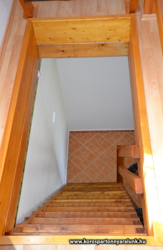 • Épületben tetőtér beépítés, nappali konyhával, terasz, tusoló mosdóval, WC-vel.