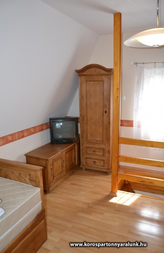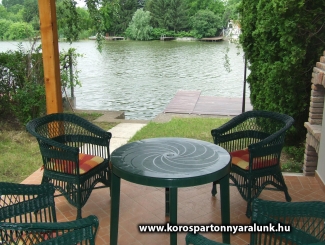 4+2 férőhelyes légkondicionált nyaraló, 100 négyzetméteres zárt udvarral. Az emeletes épülethez tartozik nappali felszerelt konyhával, fedett terasz és onnan nyíló fürdőszoba, tetőtérben négy főre ágyazási lehetőség. 10 méter széles kiépített part nagy stéggel, csónakkal, bográcsozóval-grillezővel. A Körös 80 méter széles a nyaralónál, jó horgászási lehetőséggel. Az utca felőli részen parkoló, az udvaron egy személyautó parkolására alkalmas zárt parkoló. Pároknak, kis családoknak, horgászoknak ajánlom a nyaralót.
