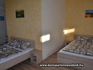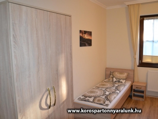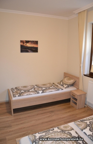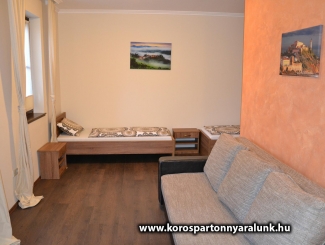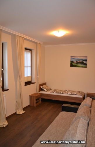 • Utca felé néző szoba: a szobához tartozik fürdőszoba, három heverő, és egy kinyitható ülőgarnitúra.
