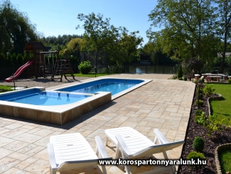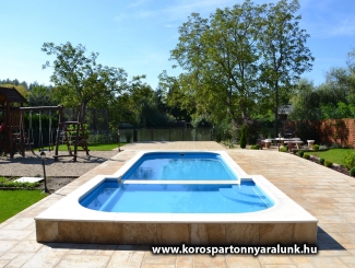 • 2,5x3 méteres 0.5 méter vízmélységű, hőszivattyúval fűthető gyermekmedence.
