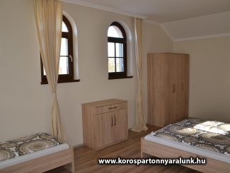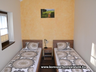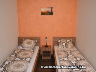 • Vízpart felé néző emeleti szoba: két franciaággyal és egy heverővel, fürdőszobával.