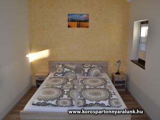 • Földszinti szoba, mely mozgáskorlátozottak, kerekesszékkel közlekedők számára is alkalmas. Egy franciaággyal és egy heverővel, zuhanyzós fürdőszobával.
