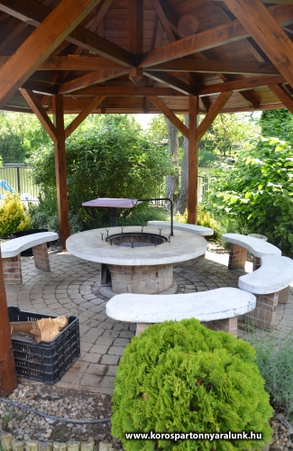 • Fedett, kiépített bográcsozó, körben műkő ülőkékkel.