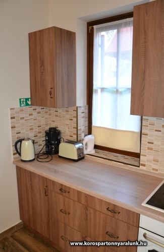 • Felszerelt konyha, teljes edény- étkészlettel, poharakkal, konyhai eszközökkel.