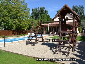 • Az udvaron tornyos játszótér, melynek környéke ütéscsillapító apró kavicsággyal feltöltött.